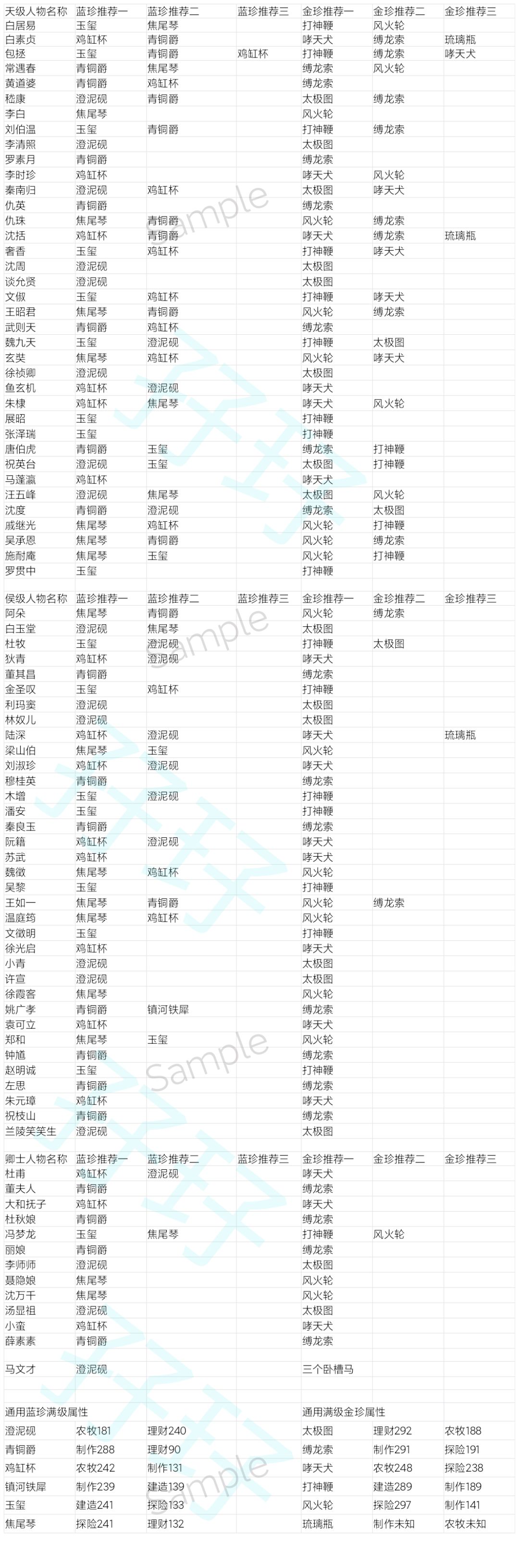 1.配置珍宝主要看人物属性,有些人物的能力与属性一致的,比如董其昌董夫人这种能力支持其制作属性必配制作属性最高的青铜爵,金珍缚龙索。