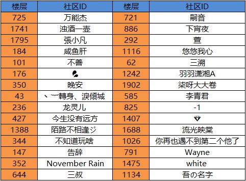 下面来公布获奖名单,各位大侠可以对照查看自己是否中奖: