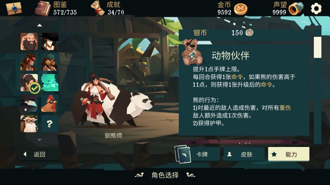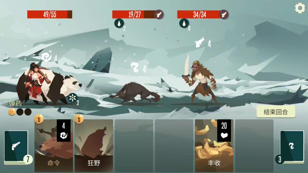 熊开局获得一种行动(上盾/攻击),初始行动点为4点,只能靠命令在战斗内永久提升