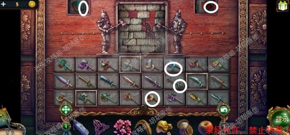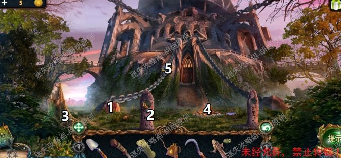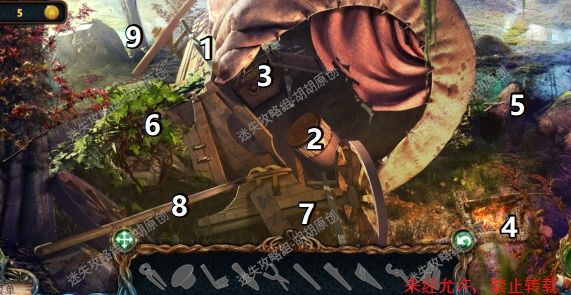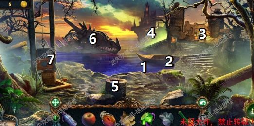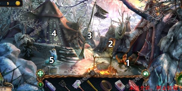 122.荒地—水井,5处按照下图顺序点击进行解谜,完成后获得钥匙 121123.城堡前,正中间1红色帐篷下箱子使用钥匙,获得克拉迈头 123