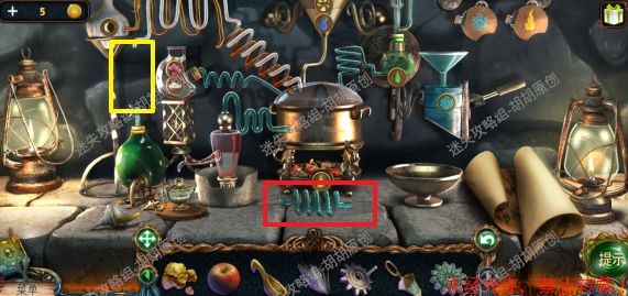 108.平原—小屋内,9处桌子上使用发光药水配方,使用小瓶,将红框中的螺旋管子装在左侧黄框处 108 108.1