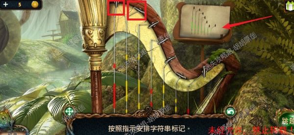 130.沼泽地,4处安装迈拉克头,雕塑嘴里获得壁画的一块,3处竖琴使用调整表,红框处调音器调节琴弦,直至琴弦变绿,暗盒打开,获得壁画的一块 130 130.1