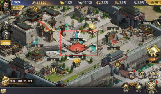 3. 排行:在大殿5级后解锁,解锁后可以查看各种排行,比如战力排行啊,最强武将排行啊,可以查看自