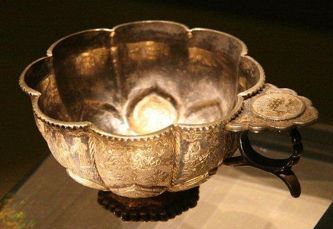 唔,这是藏于陕西历史博物馆的八瓣仕女狩猎纹银杯。