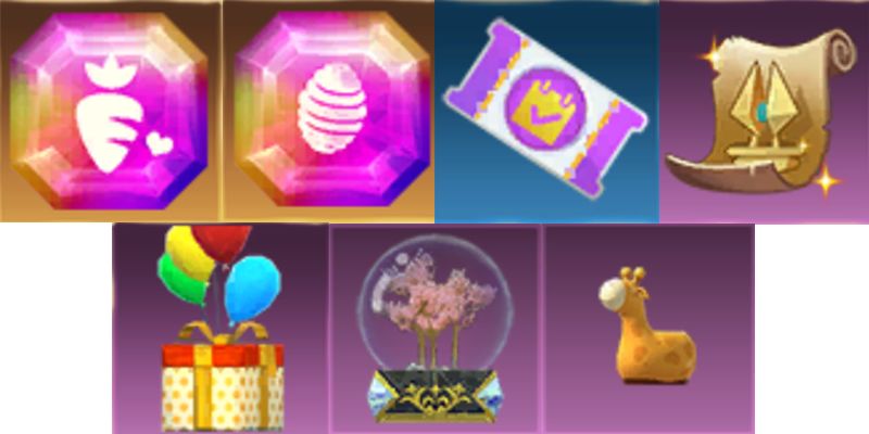 本期的活动兑换商店中有:疯疯兔进阶石、粉抱抱熊进阶石、传送卷轴、补签卡、小鹿花盆、缤纷气球礼物、幸运水晶球