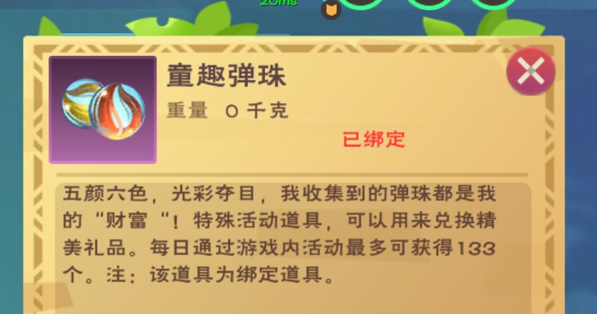 活动期间,各位探险家们可以通过砍树、挖矿、采集、击杀部分动(怪)物,有机会拾取到这些童趣弹珠,它们可是很重要的道具,大家可以用它们在活动商店中自行兑换喜欢的奖励~