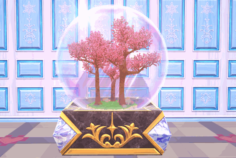 幸运水晶球,里面粉嫩桃树,花瓣飘落,玻璃外罩也在阳光照耀下炫彩亮丽
