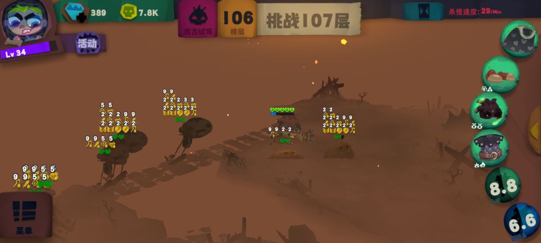 一百零几层,没点以前每个木偶是四千到五千伤害,点完每个七千左右伤害,命中率还高了20,很巴适