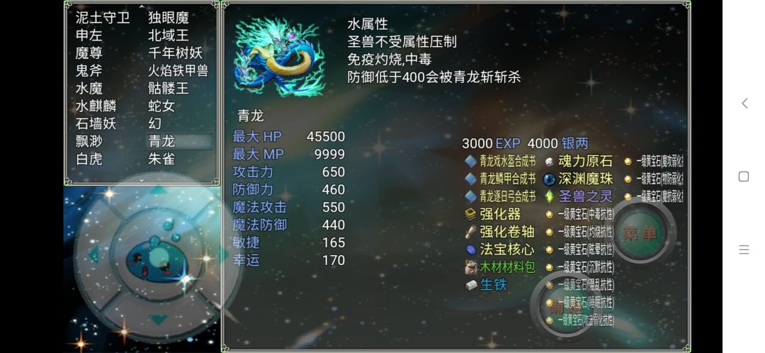 青龙在四圣兽里属于中下难度,整体难度不算高。开荒建议第一个锤青龙试水,能打赢青龙过白虎和朱雀基本没啥问题了。