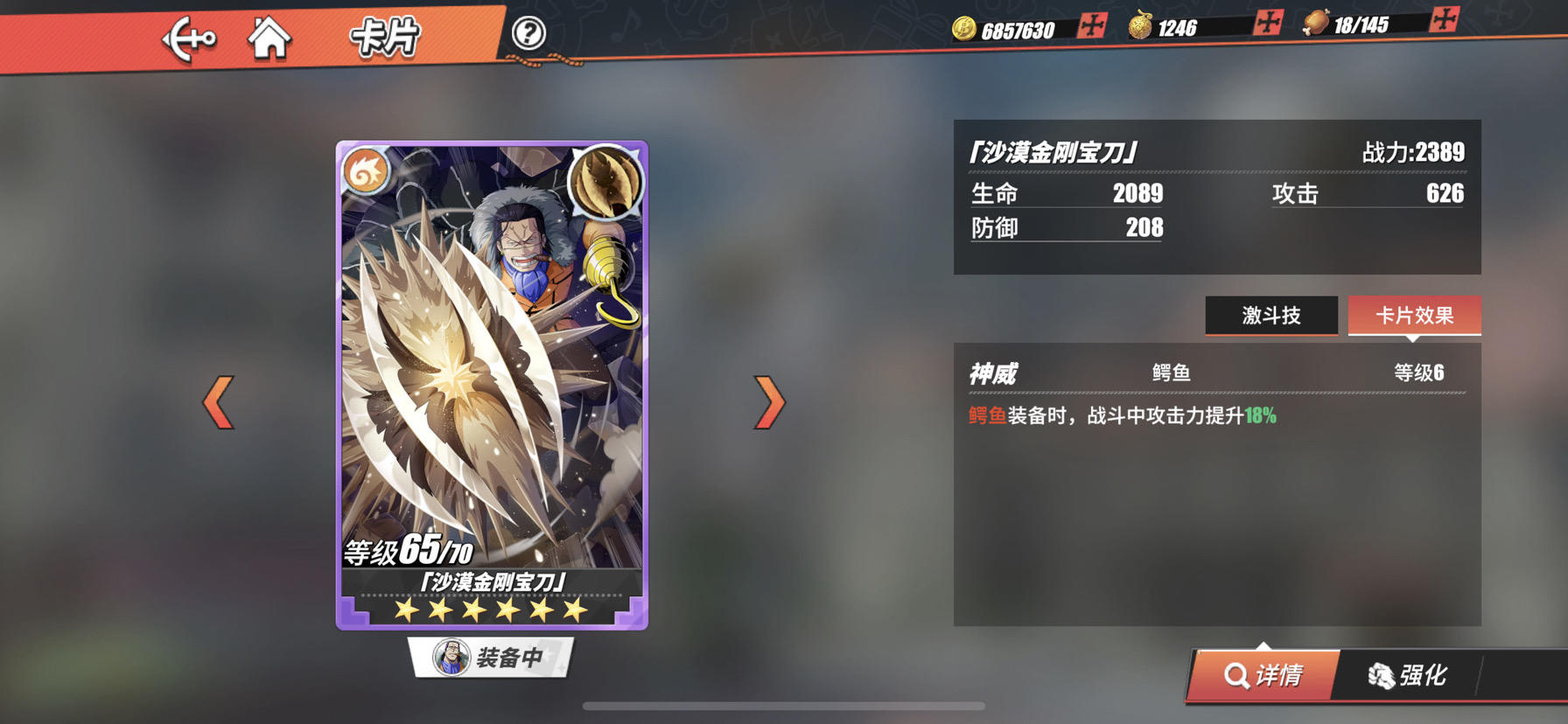 今天把鹰眼的激斗卡升满了,对比了一下鳄鱼紫卡,属性差距还是非常大,进图攻击力多7%,所以个人感觉激斗卡能升金还是要升金,而且资源还是够,每周1-2张核心,1-2张金卡本体,完全够给主c养成