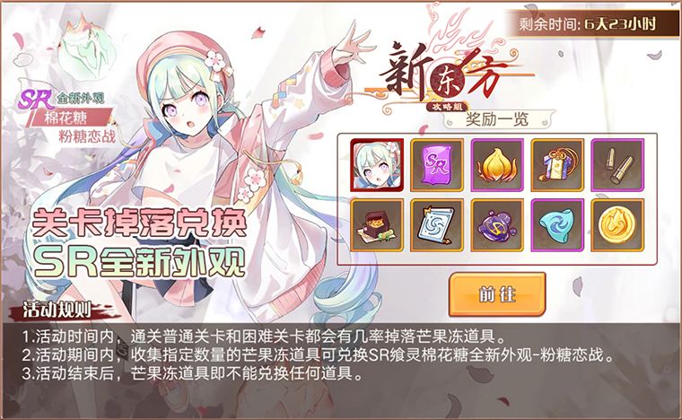 1. 扫荡任意关卡,可以获得「芒果冻」道具,可兑换奖励