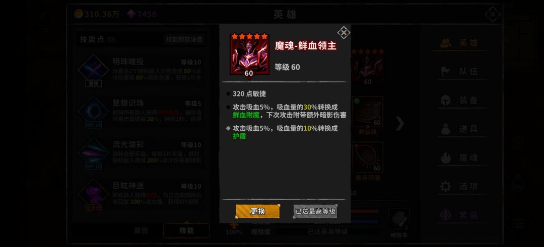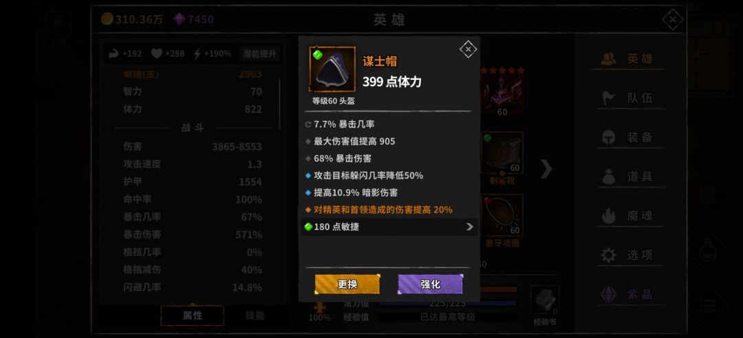 装备词条:2条防躲闪>吸血>暗伤≥暴击=最大>爆伤>敏捷。