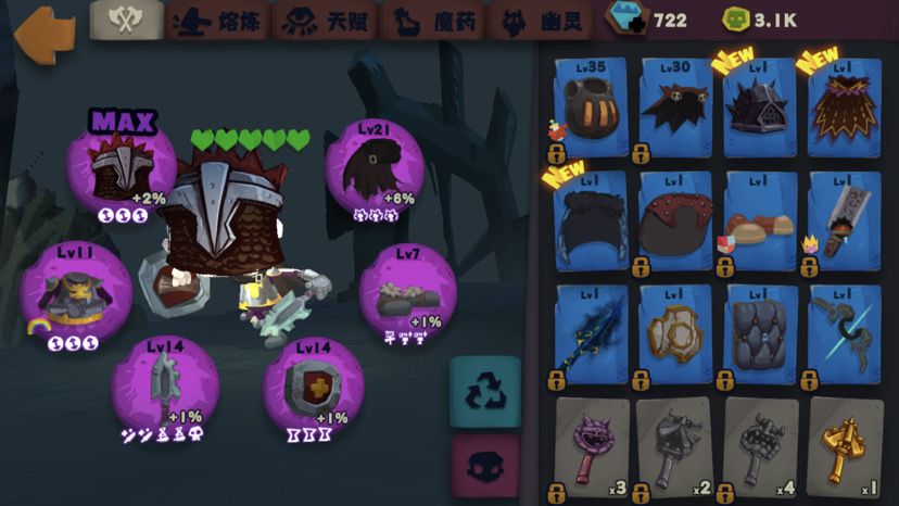第二:生存。也就是回血。回的越快,爆的速度越快,尤其是200层以后怪会秒人,那么就需要续航。