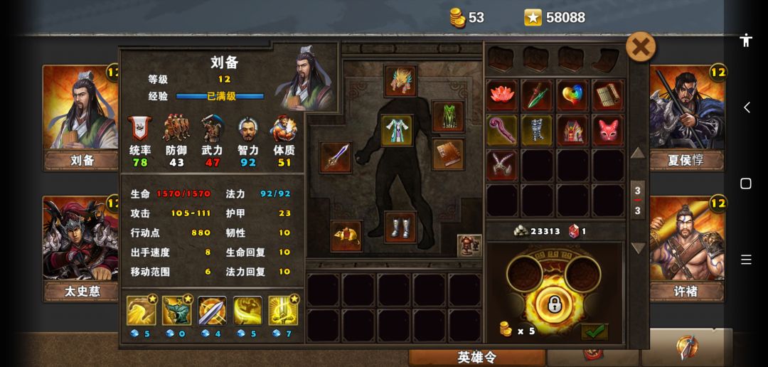 。我喜欢把刘备关羽放到3号和4号位,这样关羽可以更好的够到小兵,来一个死亡大风车。神射手分4组,剩下的兵挑一个额外在一组。刘备可以用倚天、雌雄、和加1攻击的黄色武器,我喜欢用倚天因为关羽伤害很高可以直接让倚天叠好几层,神射手伤害更高。因为用关羽有的时候会被堵路够不到小兵的情况,所以我就每一个boss面前过一天,这样可以在打boss失败了更好的跑到boss面前。打孙权的时候可以选择远程兵种,这样让关羽杀的更快。