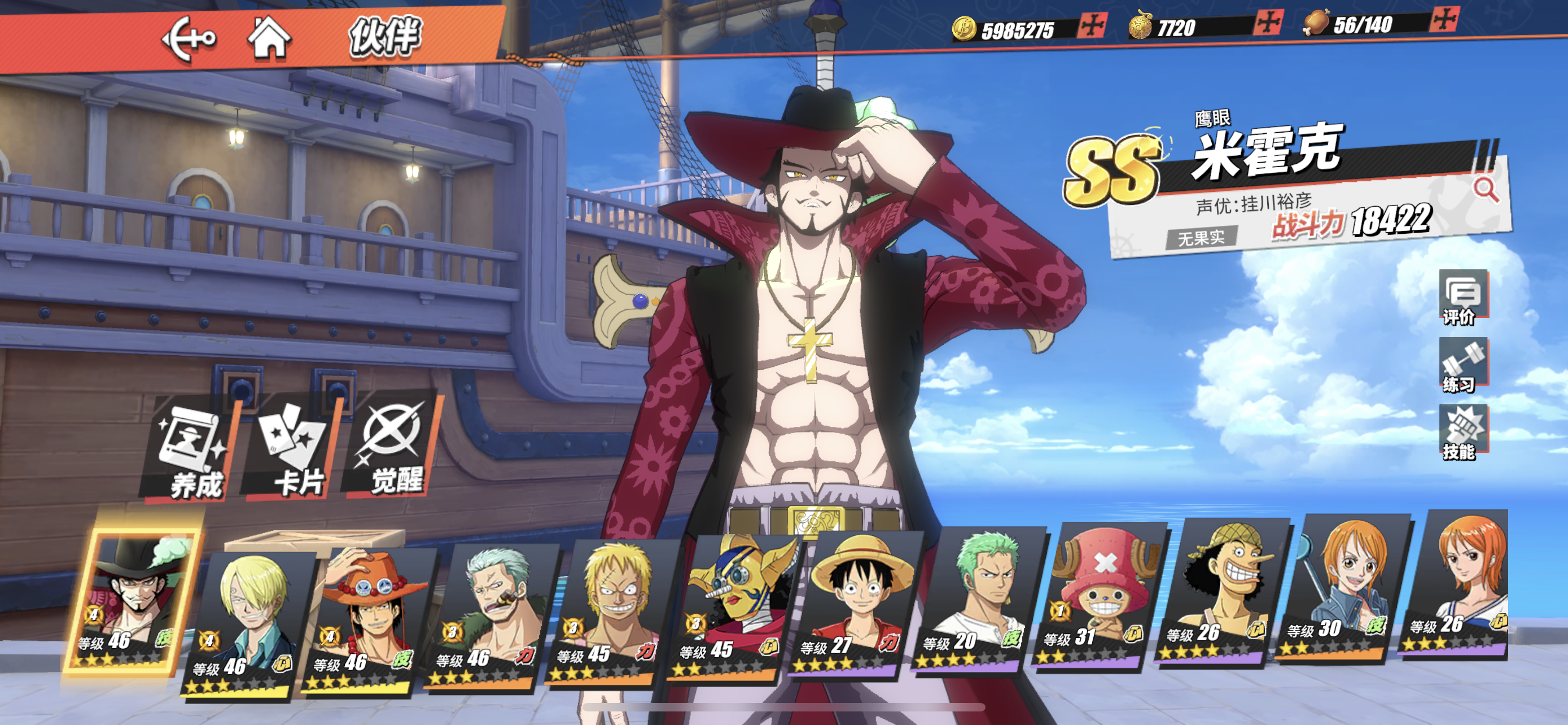 上上周入的坑,现在有鹰眼,艾斯和黑足三个ss,我卡片是慢慢换金色的激究嘛?先养谁?目前只有几张金色的战意卡,该怎么玩呀🥲🥲
