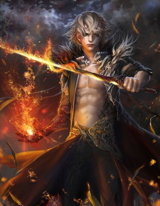 人类之间相传着关于使用火焰剑青年的传说。内容是因美丽的外表受到妖精的喜爱与青春永驻的祝福,在悠长的岁月中专研自己的剑术达到了极高的境地,被称为最完美的剑士。