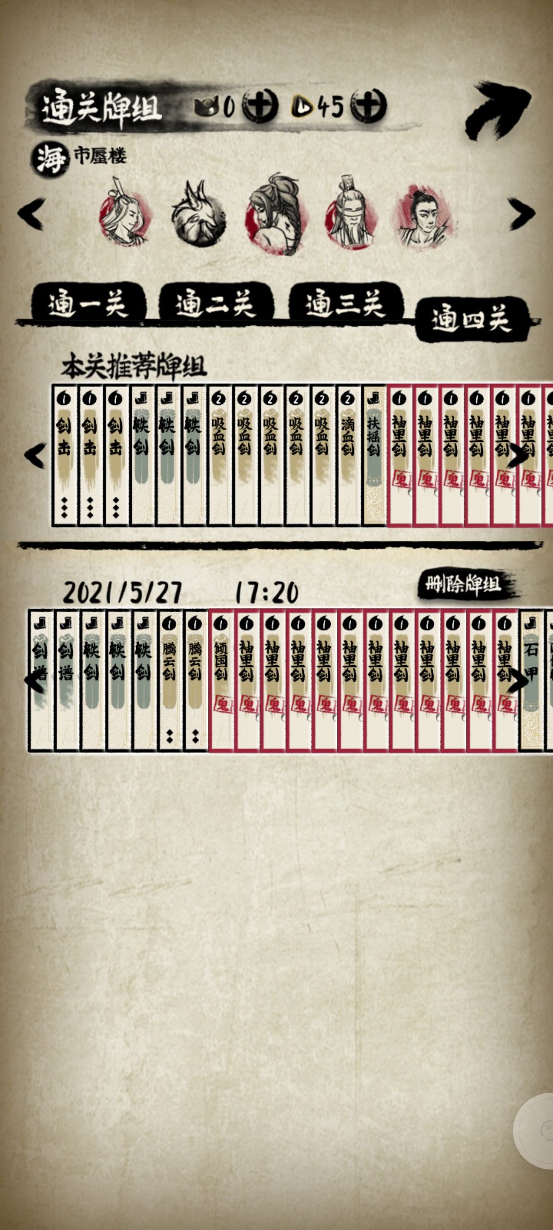 通关卡牌如图,流星镖没有用,大家可以参考一下。