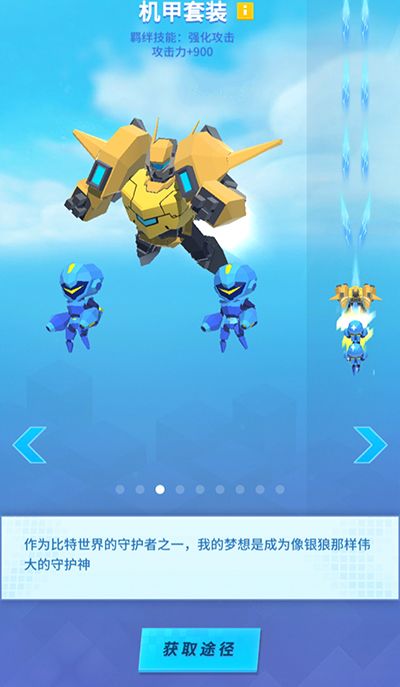 比特宇宙中有许多怪物BOSS在等待飞行员们的击败,不知道你是否也有一个守护比特宇宙和平安定的梦想呢?机甲套装的使命就是守护比特宇宙,如果你也有这样一个梦想,那速速带走全套机甲套装吧~