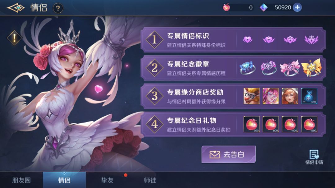 情侣之间进行互动,可以获得“缘分果”、缘分果可以在缘分商店购买特殊道具、还有专属的情侣皮肤。