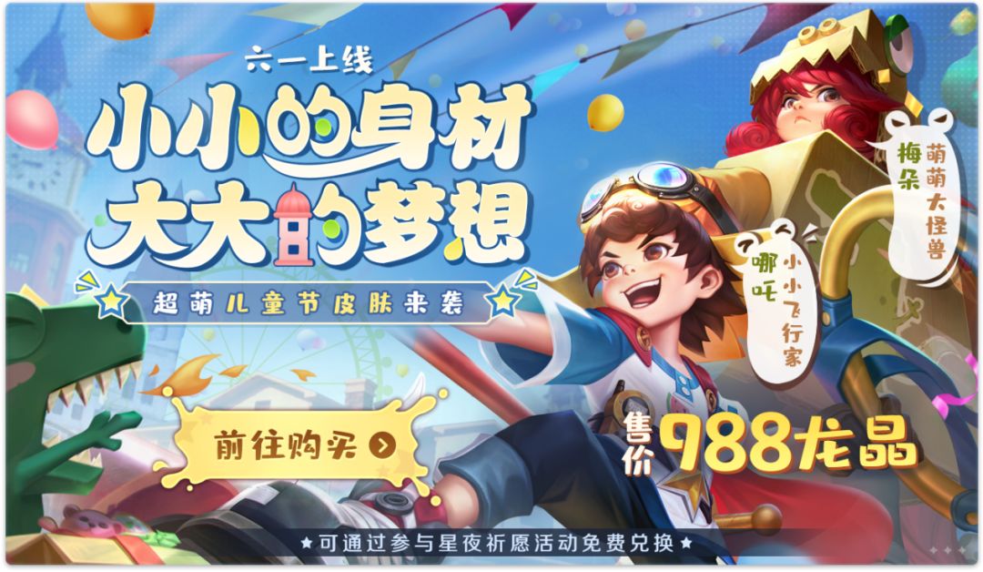 小小的身材,大大的梦想,超萌人气儿童节专属皮肤【哪吒·小小飞行家】【梅朵·萌萌大怪兽】儿童节6月1日准时登场!