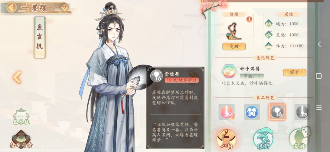 假设现在有一个运气不怎么好的兰台,为什么这么说呢?因为她其他24个墨魂都收齐了,就是没有鱼玄机。