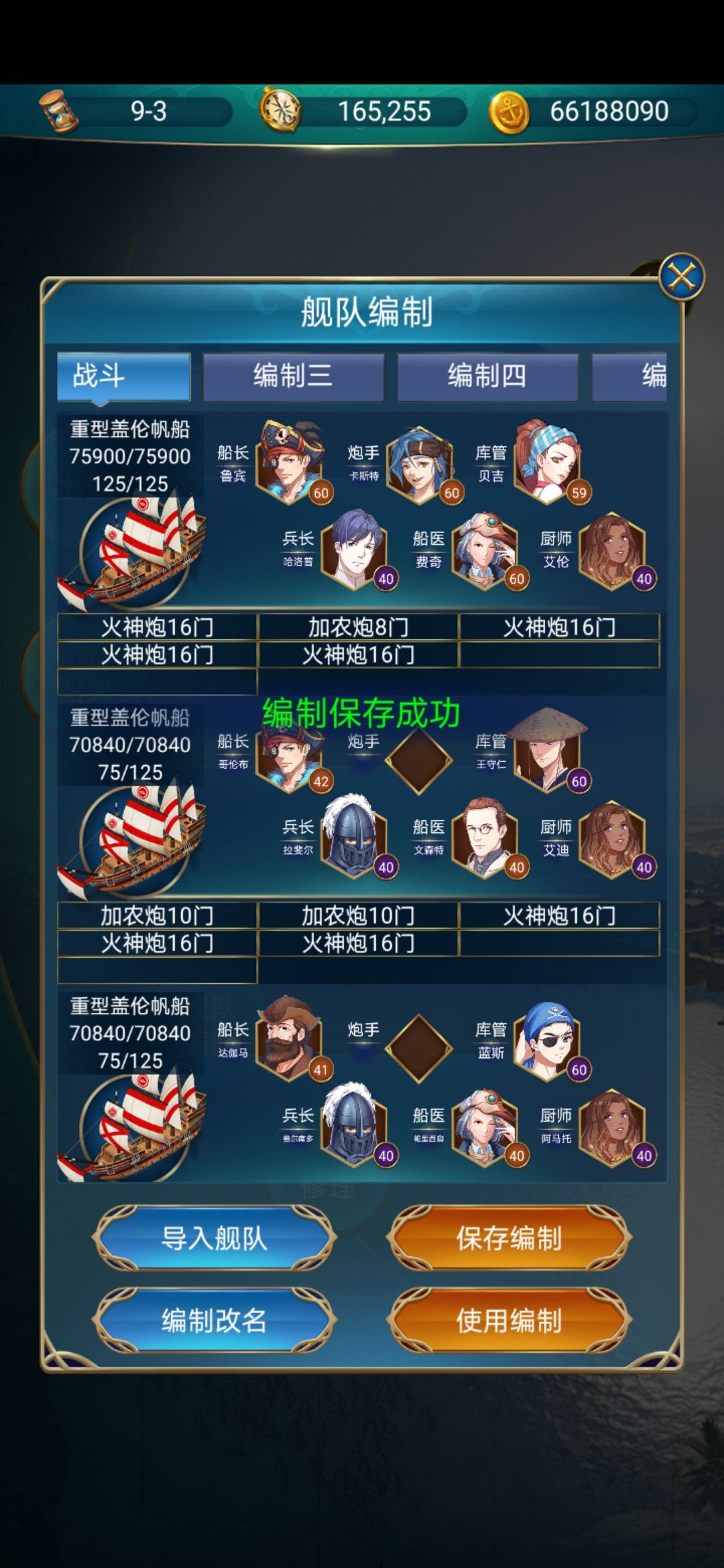 舰队编制保存不了