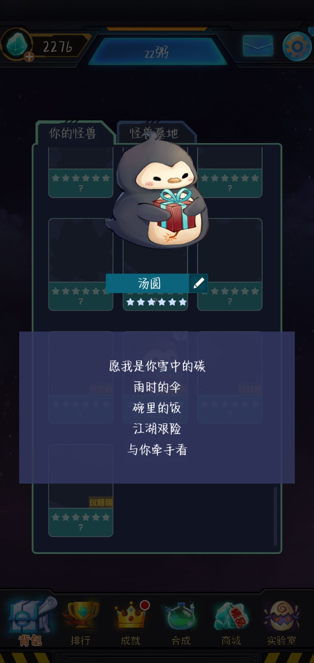 昨天睡前第一次孵了一只睡眠蛋--小企鹅!愿你是我碗里的菜!芜湖!!