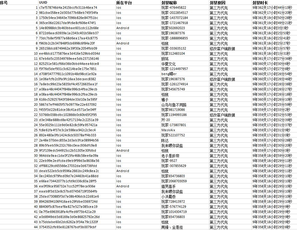 以下是近期部分封号名单