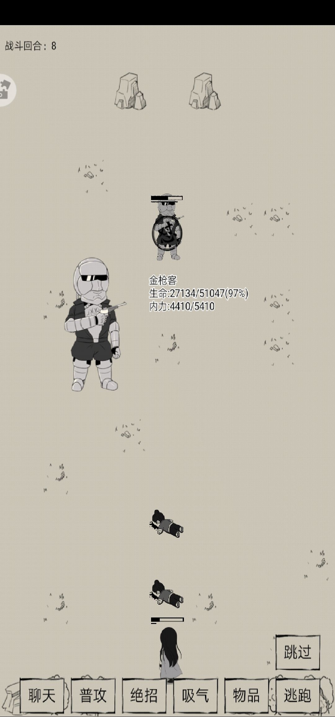 三个小喽啰,一个邀月,小喽啰基本没什么输出,邀约固定回合会放大招,伤害比较高,只要维持血量不在斩杀线,难度一般。
