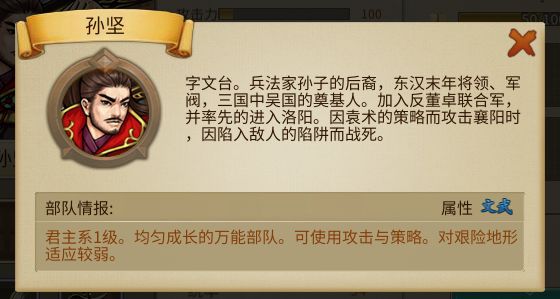 整个故事剧本总计包含58个普通剧情关卡。这58个关卡将分别讲述3位君主不同的历史。孙坚自钱塘之战起势,经过汜水关之战本该大方溢彩,却因袁术嫉妒,故意迟发或不发军需与钱粮,导致其受挫而战败。而后孙坚又在攻入洛阳后取得传国玉玺后,决定退出联盟,回江东在图发展。