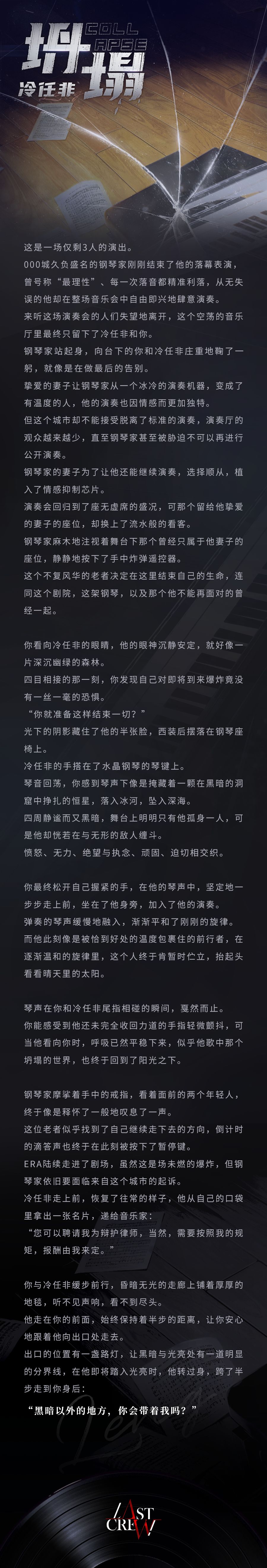各位主理人也可在后续游戏中,深入体验《坍塌》音乐背后的故事剧情,敬请期待。