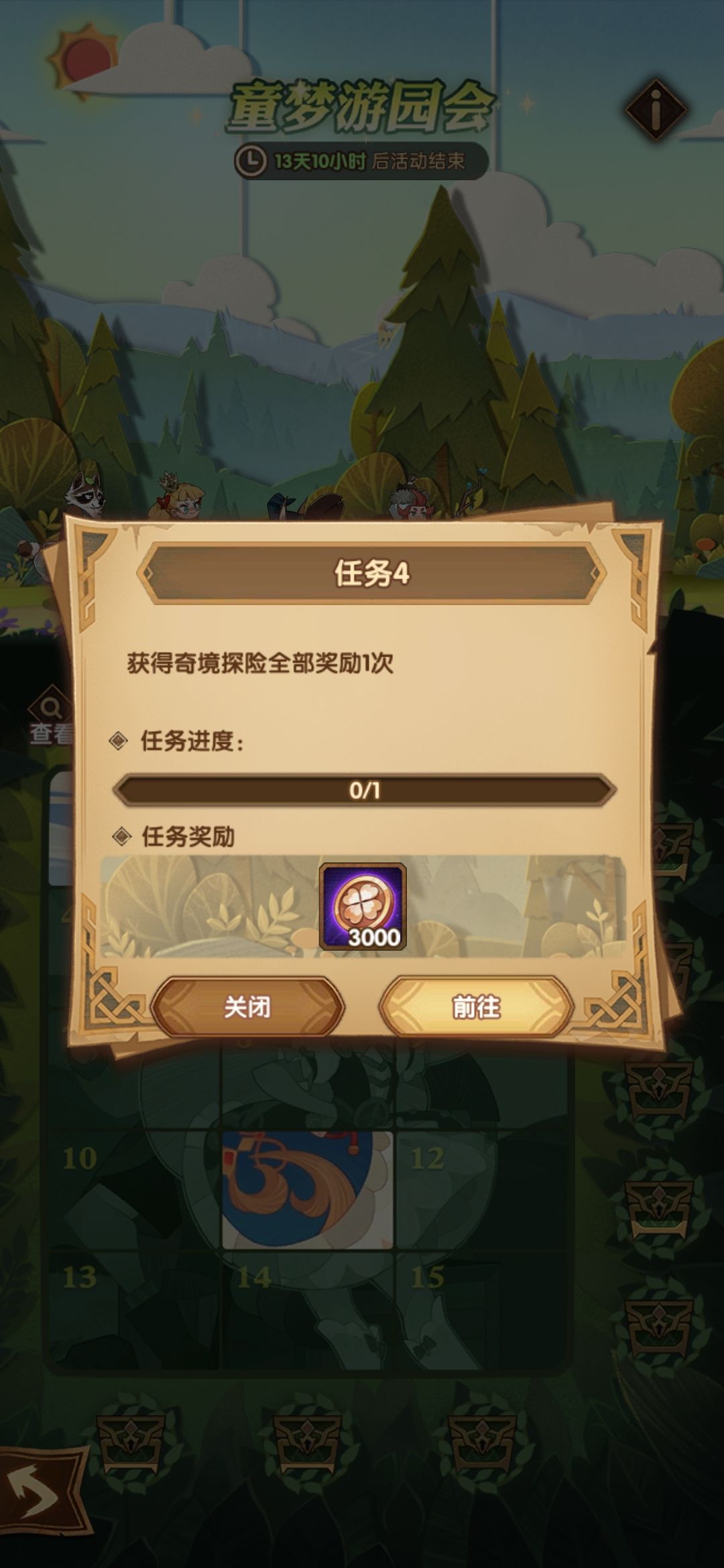 最新春游活动写着奇境幻想完成全部奖励一次 问题它昨天出来我就推完了 这怎么不算完成呢?
