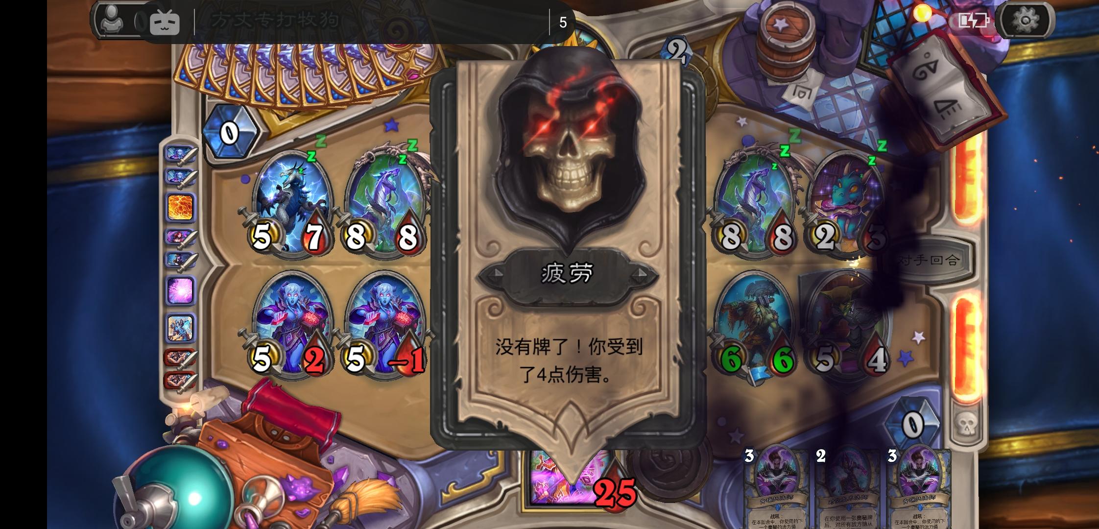 对面伊瑟拉塞了七章梦境之门,结果全沉底(1/8概率),我还有一张(对面每抽一张牌获得+1+1),对面脸都绿了