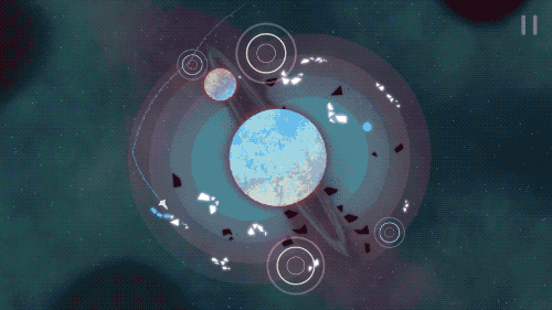 驾驶飞船,在一颗颗绮丽的星球表面收集记忆碎片。碎片环绕成螺旋状、钟表状、星形,在宇宙这块画布上作画,充满奇思妙想。