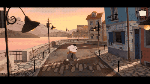 日落下的小镇,色调深沉艳丽,尽显西欧的浪漫,却也隐喻着战争的背景。