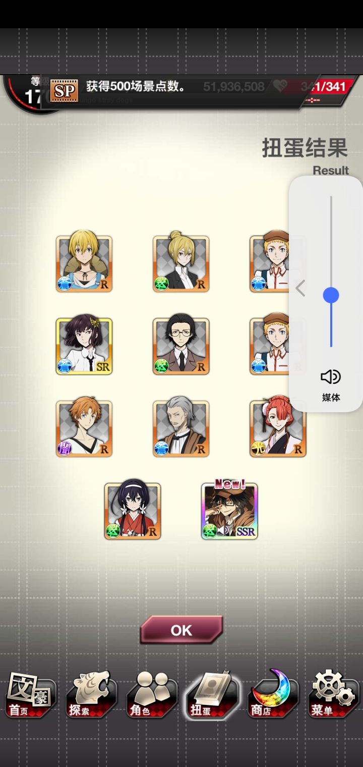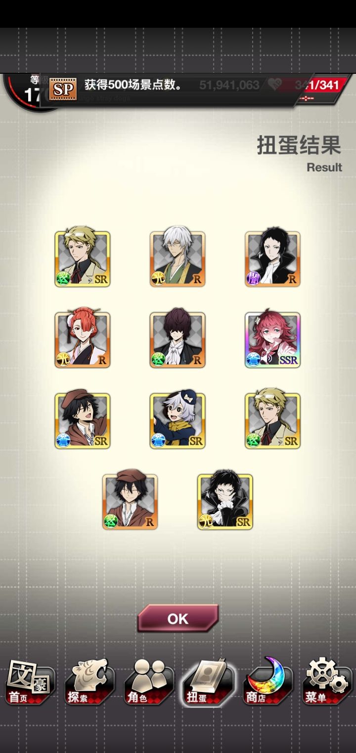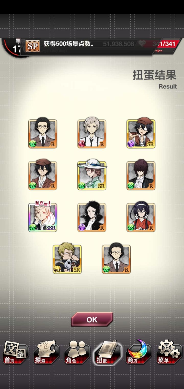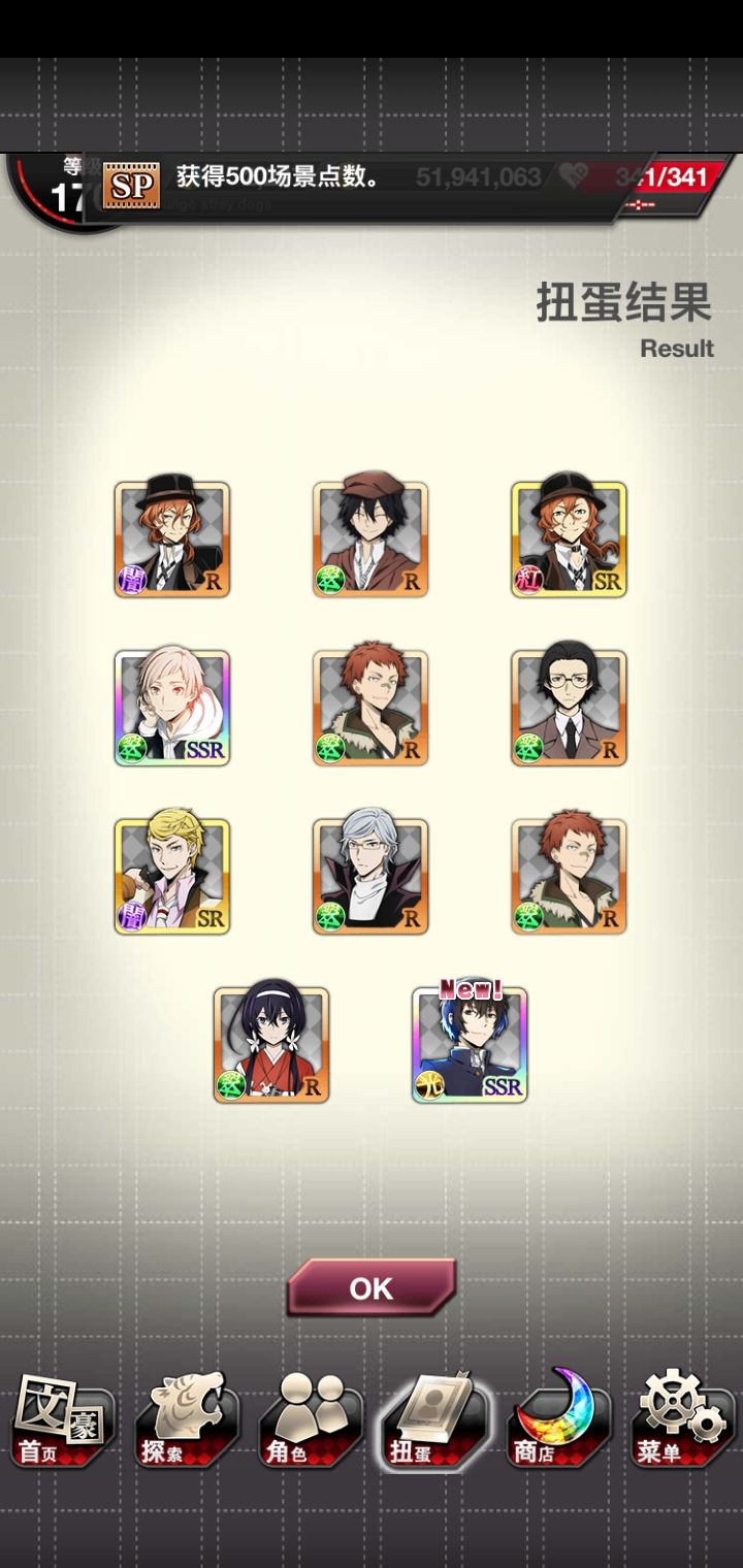 宰和敦的池子抽到了s5,没强娶就好呜呜呜呜,中也和芥那个池子抽了s1,试了下水,无水花