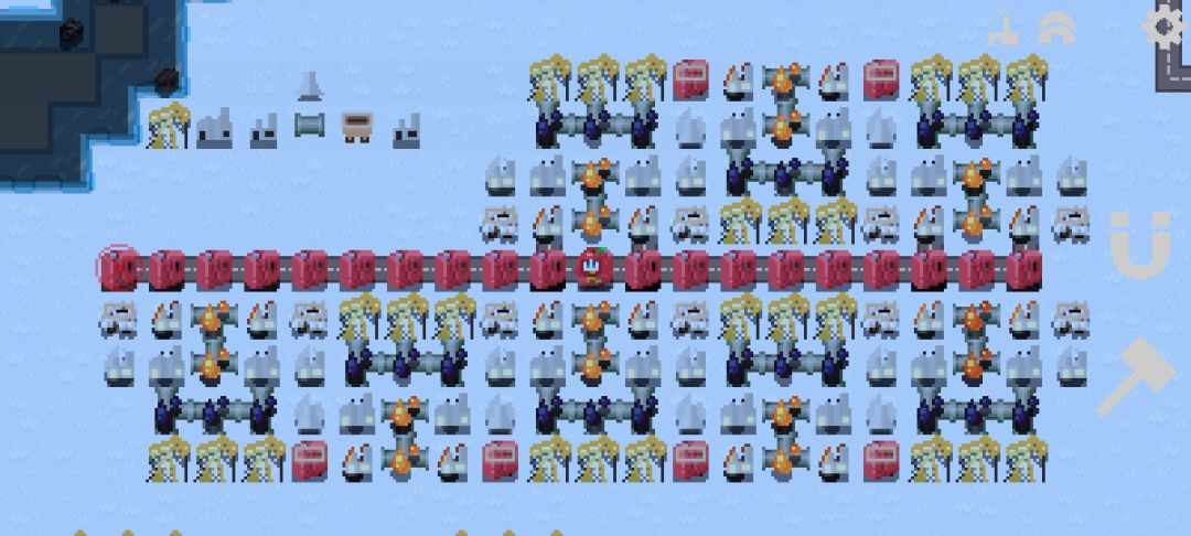 依然是上下倒插,但是要用更多道路收取上面的航空燃油,因此我们可以选择性的把上面的航空燃油换成侧面输出,取消塑料厂,换成燃气发电站,而中间的道路则可以镜像两用(这里被山体挡住了就只放一个镜像做演示),如果一直做这个矩阵可以无缝衔接的做好多好多,最后还是用机场收取道路上的,但是别忘了道路有运输上限,机场也是![[嗒啦啦2_吃瓜]](https://img.tapimg.com/market/images/6eb1d083dff1c09692102cb5a98727f3.gif)