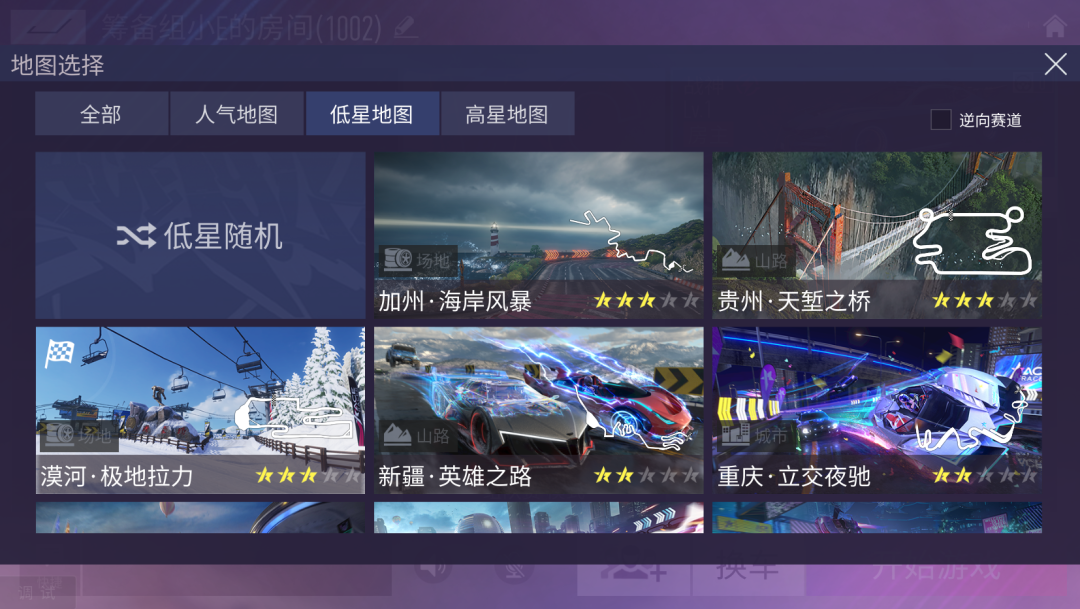创建完房间后,车手可以选择喜欢的地图,也可以让系统随机给你安排地图,不知道车手更喜欢已知的淡定还是未知的惊喜呢?