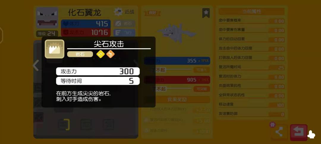 但是品相好尖石攻击的化石飞龙只有单技能版本好像是硬性标配(根据观察)。