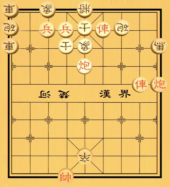 精巧小杀局,原谱红连照胜,正确。本局红方连弃双车双兵,以“重炮”杀法取胜。
