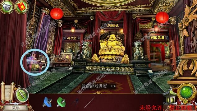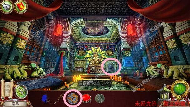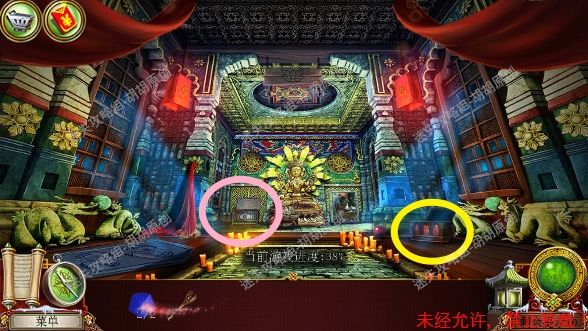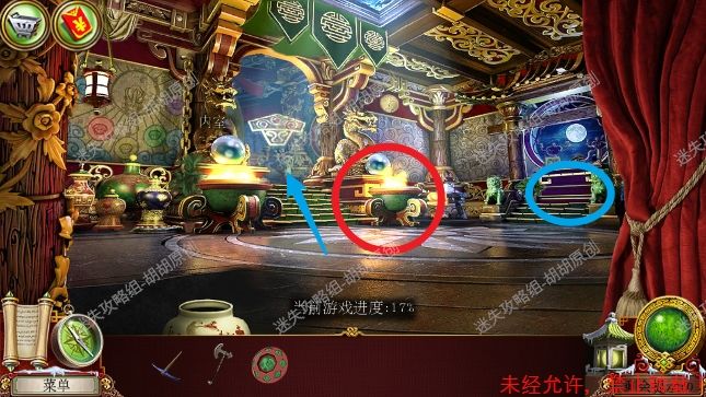 48.寺庙,蓝框的桌子上获得保险箱钥匙,桌子底下获得龙眼;粉框处获得螺旋石 48