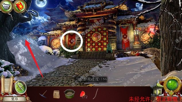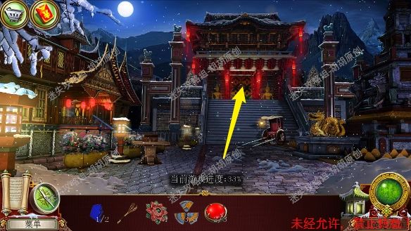 22.寺庙入口,寺庙门安上锁块,按照下图完成拼图,进入寺庙内部 22