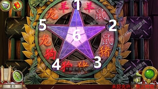 111.审讯室,石狮底座白框处获得粉筛;左边蓝框刑具处安上刑具部件,完成小游戏,按照下图标的数字,1,4,6,2,5,3,6,将图形摆放正确,完成后获得箱子钥匙 111.1.2