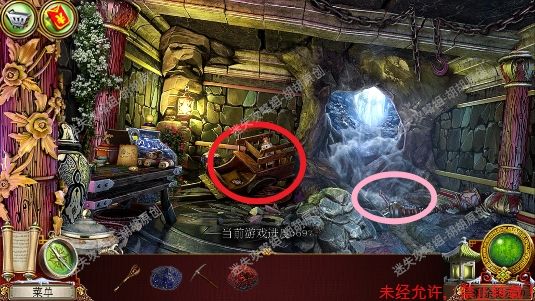 73.宽敞山洞,台阶左侧黄框圆轱辘轴处,进入开启寻物游戏,完成后获得透镜 73.1.2