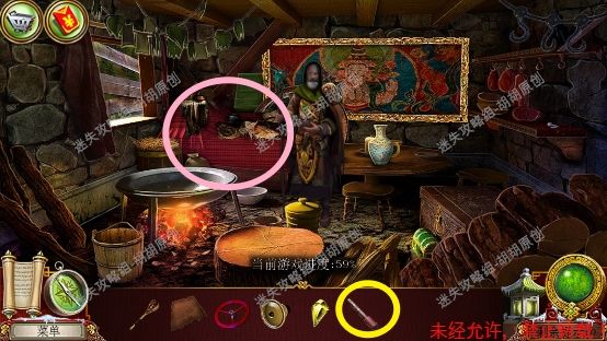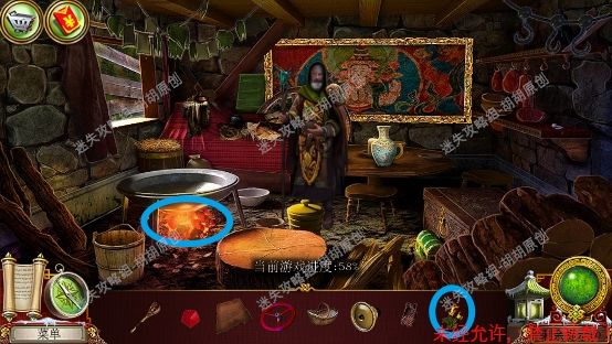 86.隐居者小屋,和npc对话,左边的红箱子打开进行寻物游戏,完成后获得装饰片;中间挂画黄框处获得秤砣,右侧肉架子上获得干肉 86.1.2