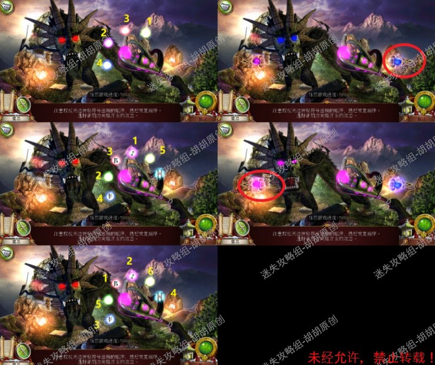 109.守护者密室,台阶左侧白框处,完成小游戏,找到物品并将它放到对应的位置上去,按照下图完成后获得笔记 109.1.2.3.4