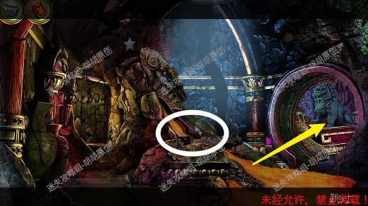 115.审讯室,石狮子的左脚,对左脚使用小镐,获得黄色矿石 115