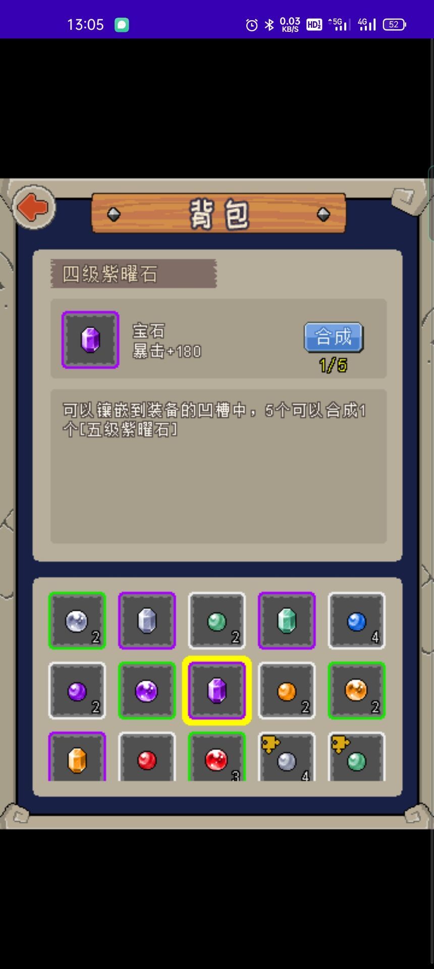 4紫色宝石,暴击加成。(1级加成30,2级加成60,3级加成90,4级加成180)