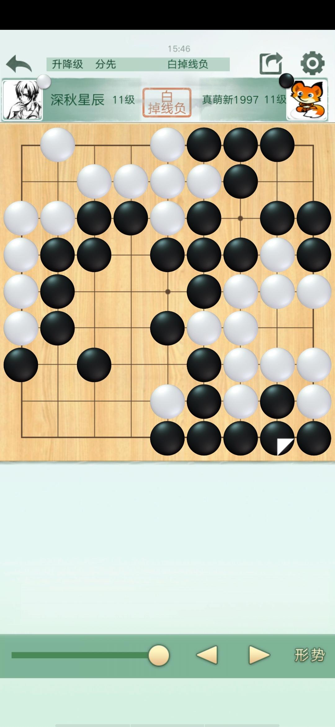 下的时候没留意右上走了一步闲棋,导致右下慢了一手,右下有点贪心也想咬一口,结果出现这种半死不活的棋,对手直接断线逃了,实际上他只要下一颗子就能扭转败局,太在意输赢不好好下反倒输了
