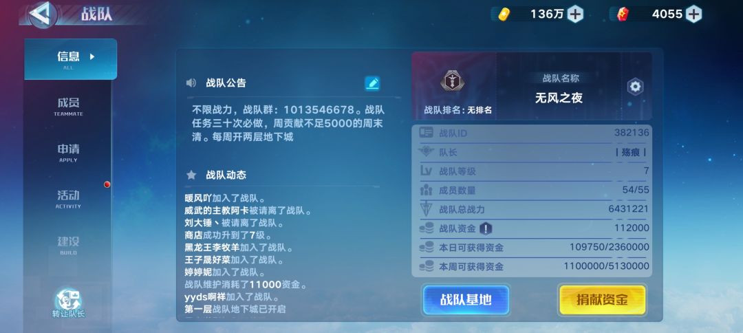 无风之夜战队招人,要求至少十万战力,每周开两层地下城,没弄到狐狸的,可以来,我们战队也是这周才开地下城,每周贡献至少5000,来的话加下面的群